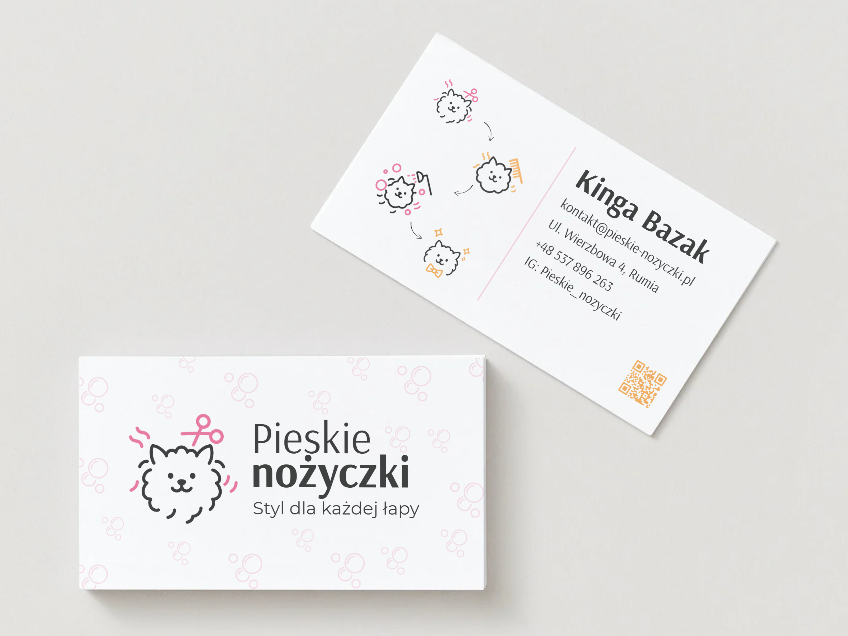 Pieskie Nożyczki zyskały wizerunek, który „mówi” do Klienta zanim ten wejdzie do salonu. Dzięki personalizacji logo i spójności wszystkich materiałów (od strony WWW po kartę lojalnościową), marka stała się rozpoznawalnym punktem na mapie Rumi. Właściciele psów od razu wiedzą, że trafiają w ręce profesjonalisty, dla którego dobrostan ich pupila jest priorytetem. To wizerunek, który łączy styl z empatią.